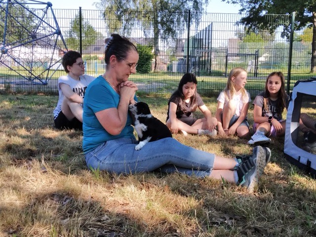 Besuch von Hundewelpen in der 4b Am Mittwoch, dem 26.6. hatten wir, die Klasse 4 B, Besuch von Frau Brummenbaum, SivasMama, und ihren 3 Hundewelpen. Frau Brummenbaum ist Tierärztin und hatte…